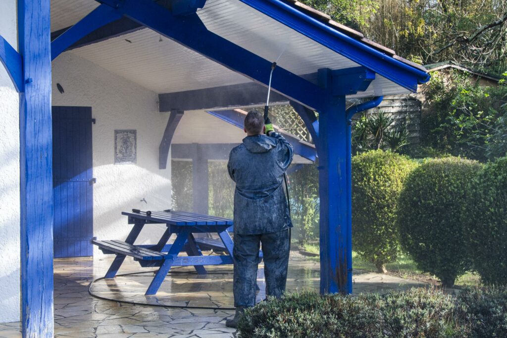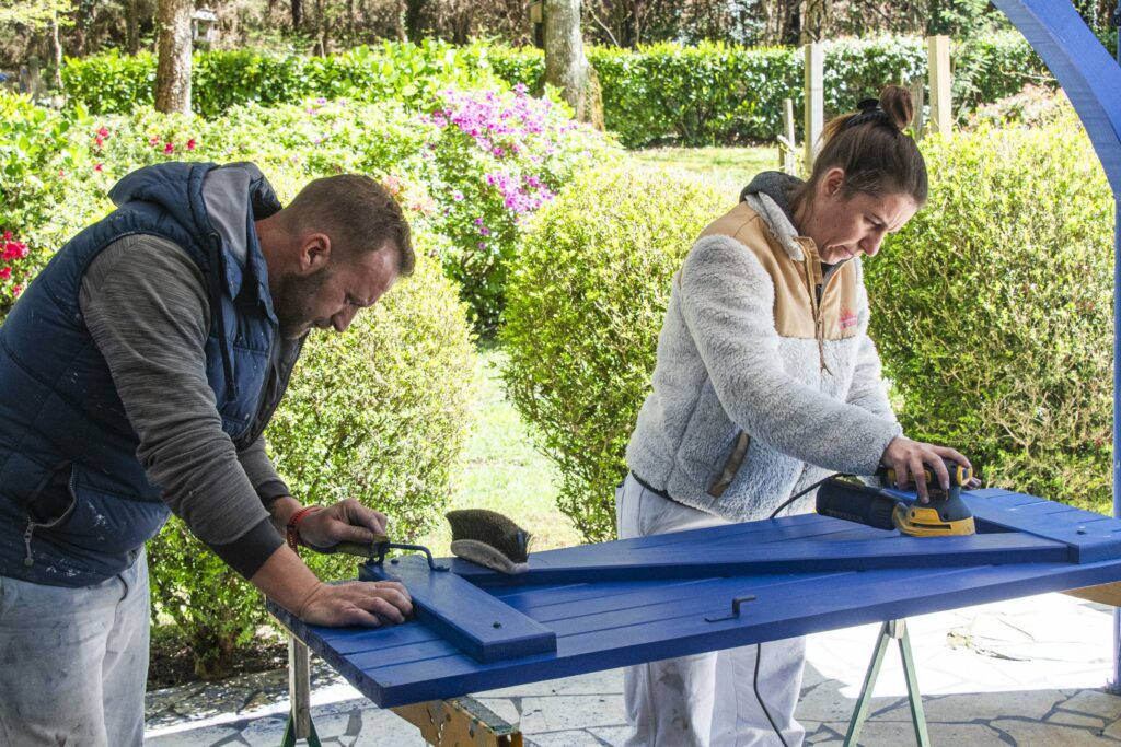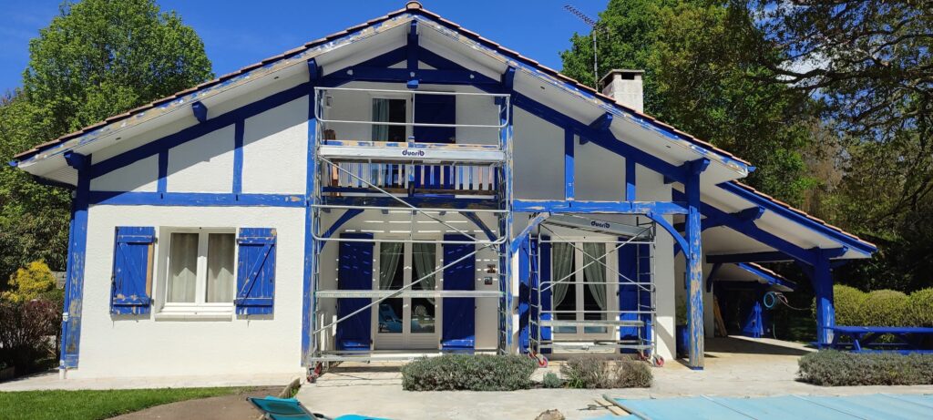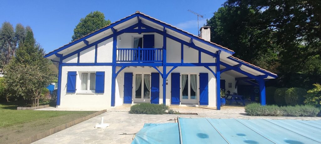 Chantier boiserie en bleu outremer RAL : 5002 réalisé a Seignosse en MAI 2025